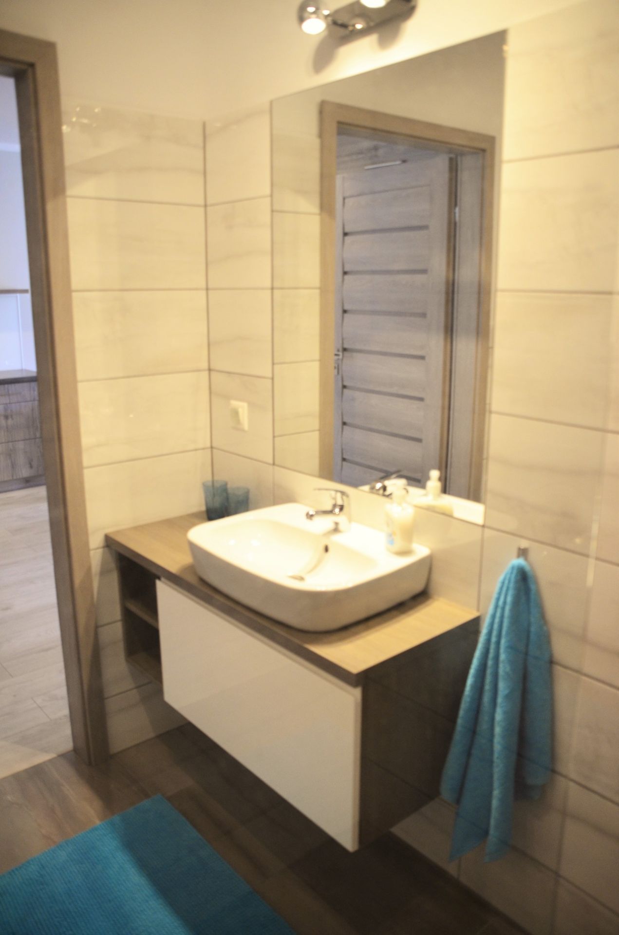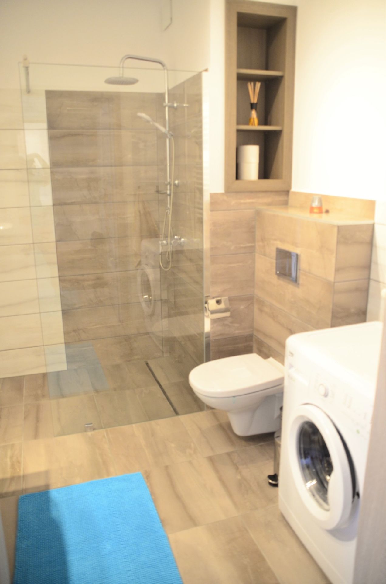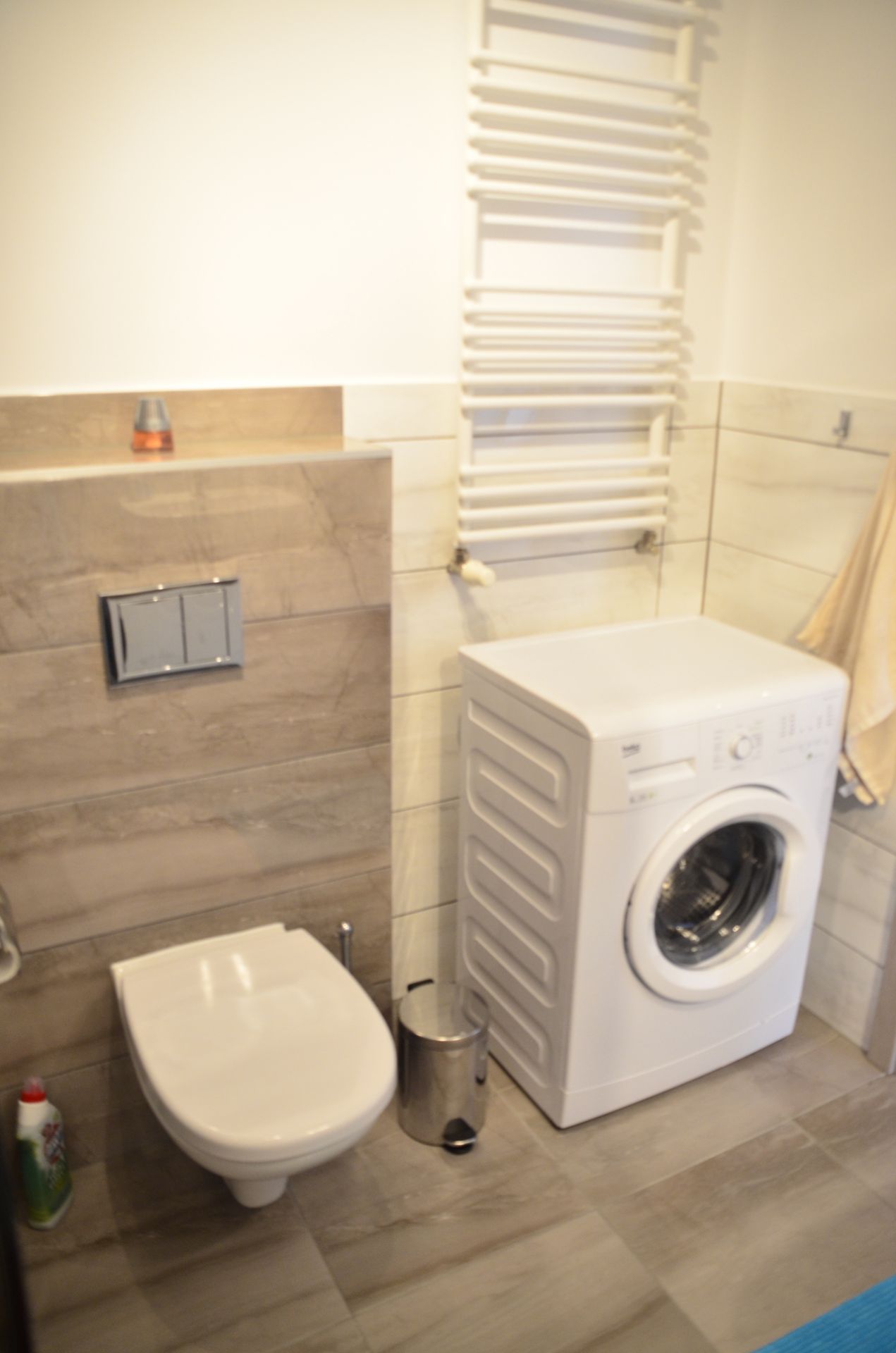 W apartamencie znajduje się również łazienka z prysznicem oraz pralką. Dla wygody gości przygotowano pościel oraz ręczniki.