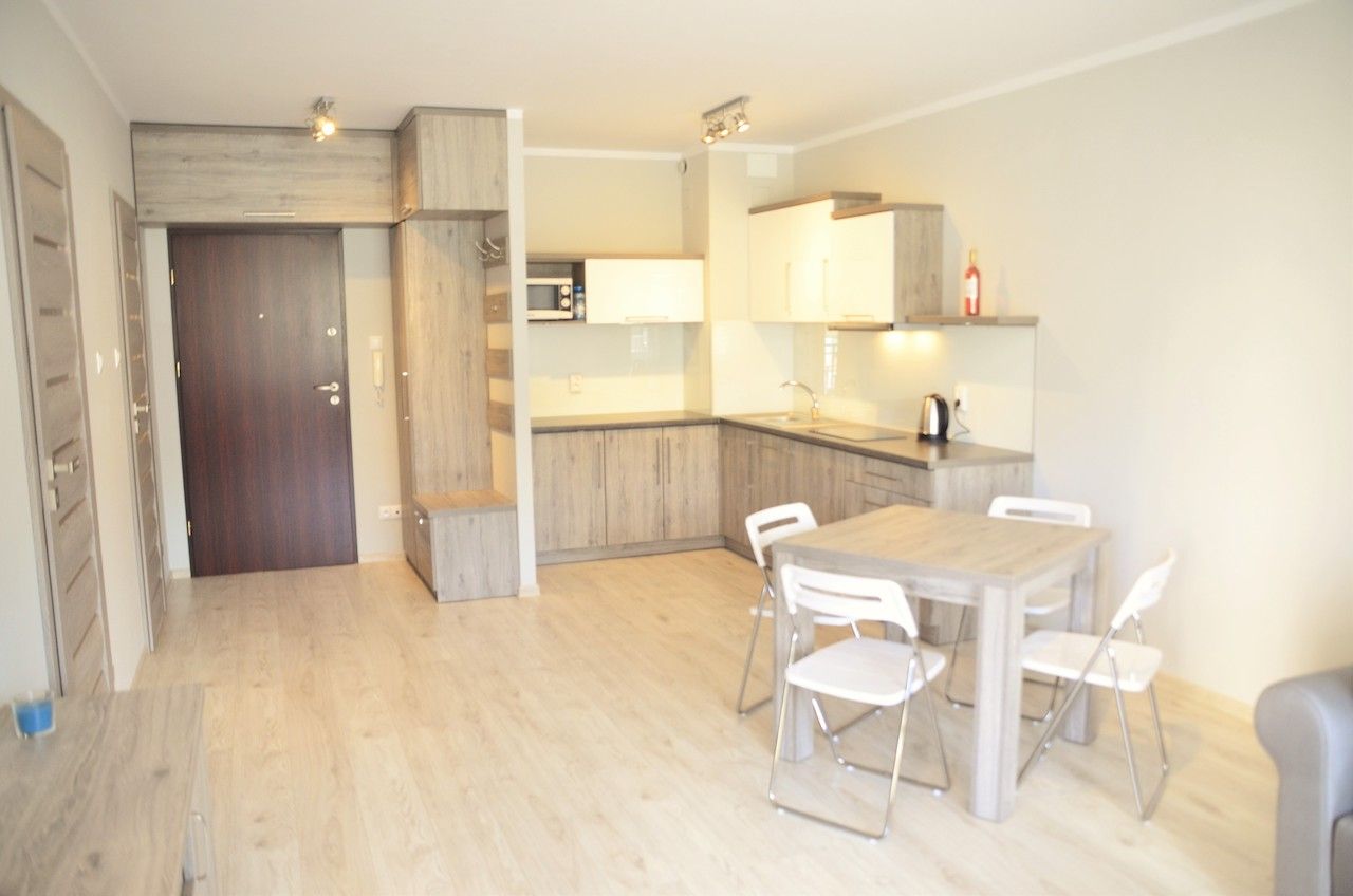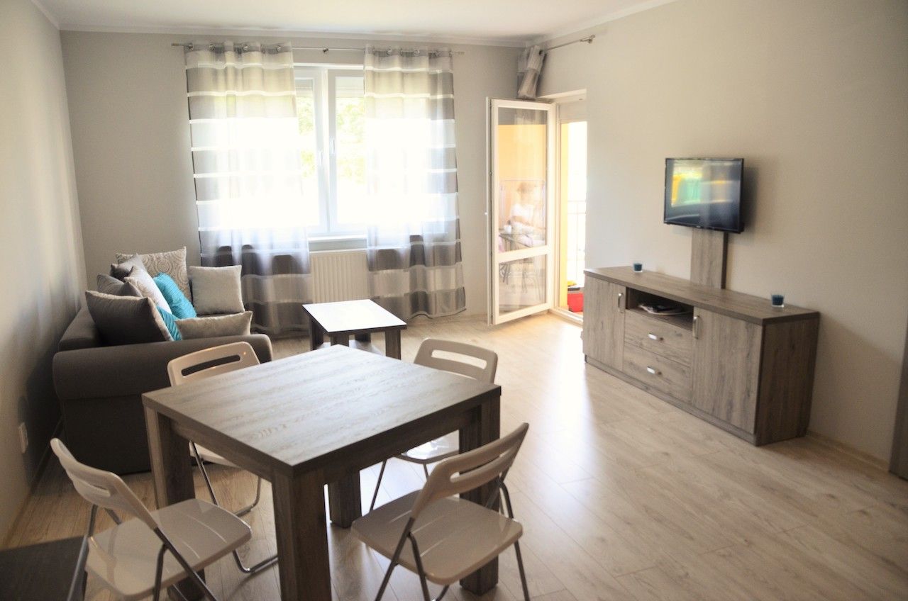 Dodatkowym atutem apartamentu jest balkon z widokiem na las sosnowy i wydmy, na którym można wypić poranną kawę lub zjeść pyszny obiad na świeżym powietrzu. Goście mają także dostęp do bezpłatnego Wi-Fi.